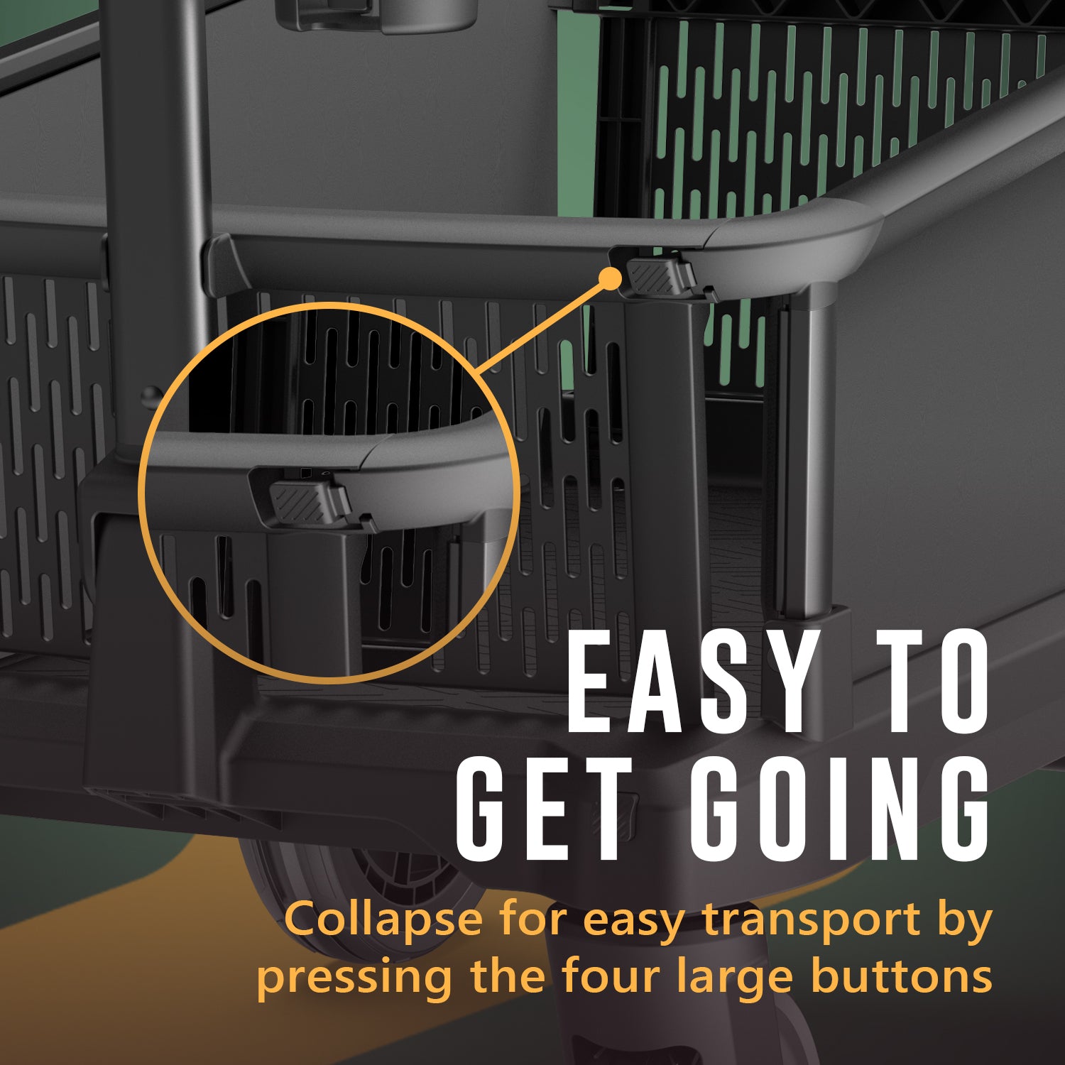 With our innovative design, the handle never touches the ground. This ensures cleanliness and hygiene, keeping your hands free from dirt and grime. One less worry with the Odyssey Utility Cart.